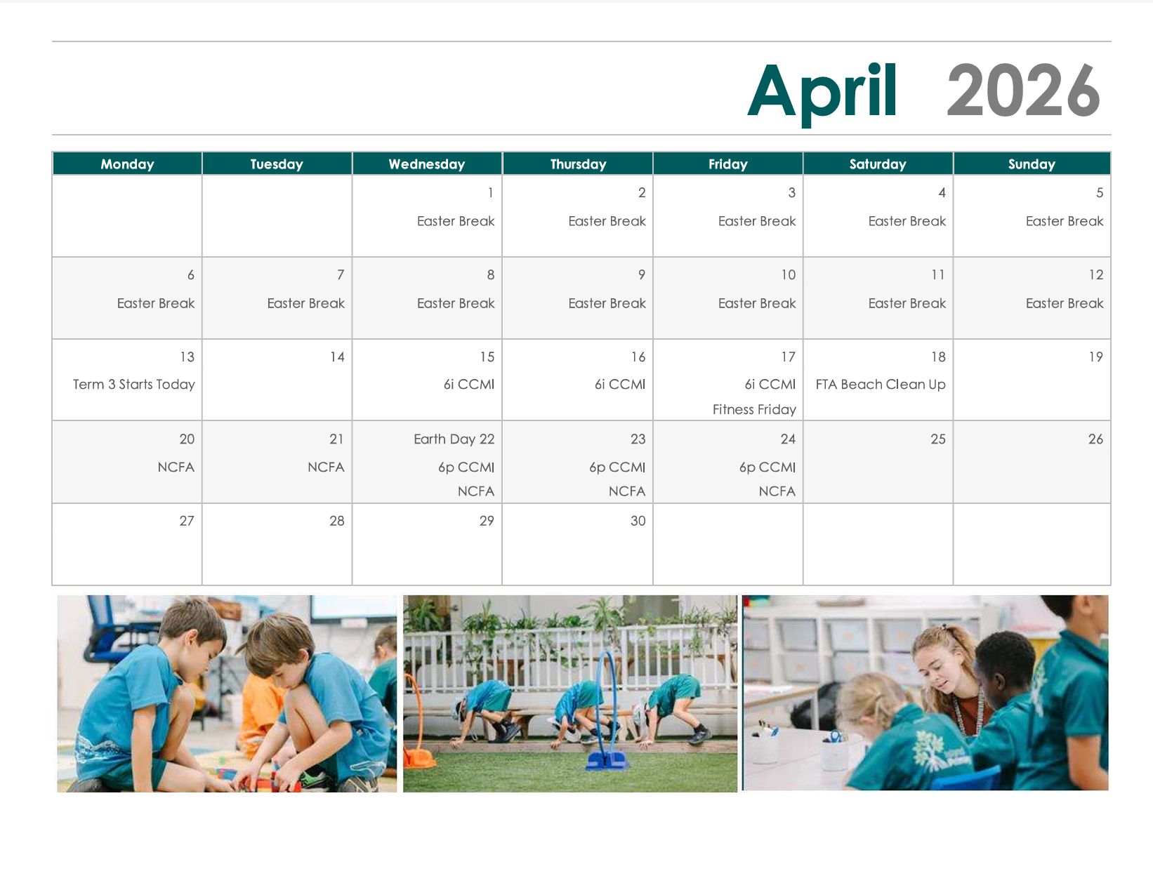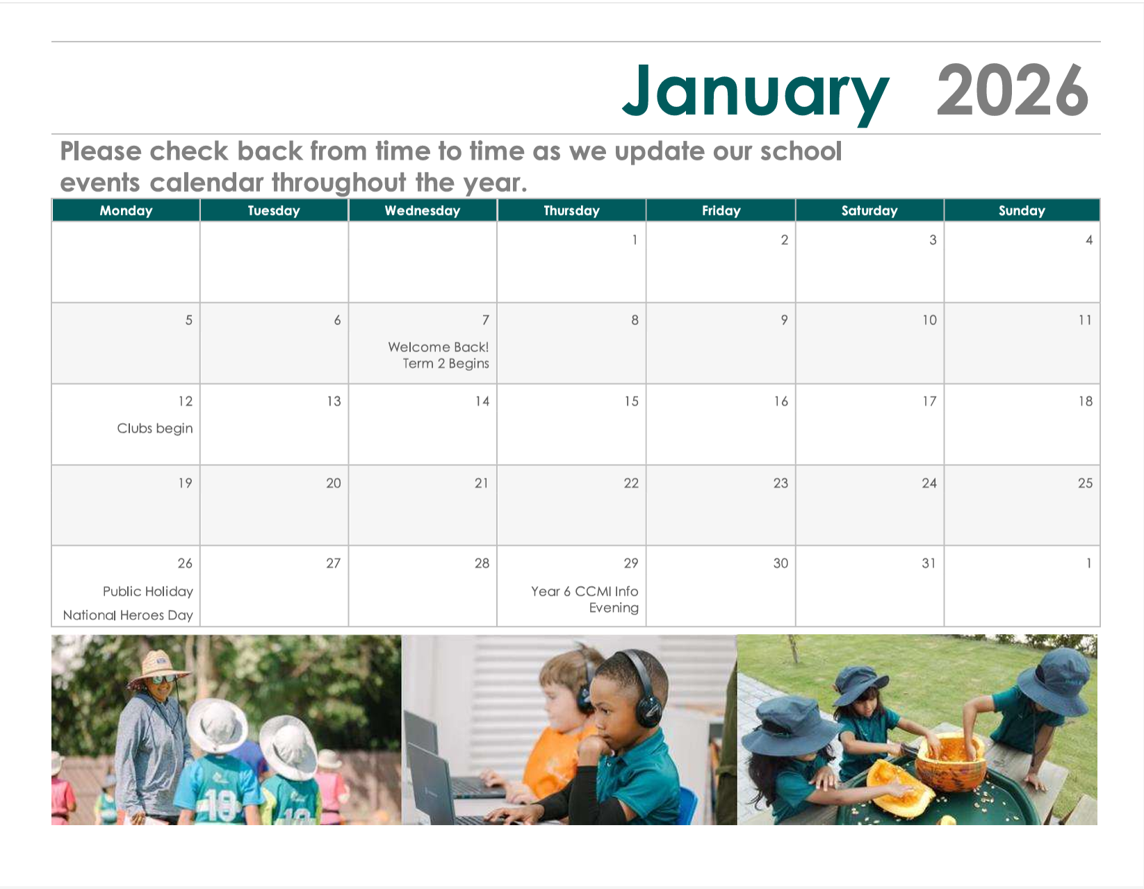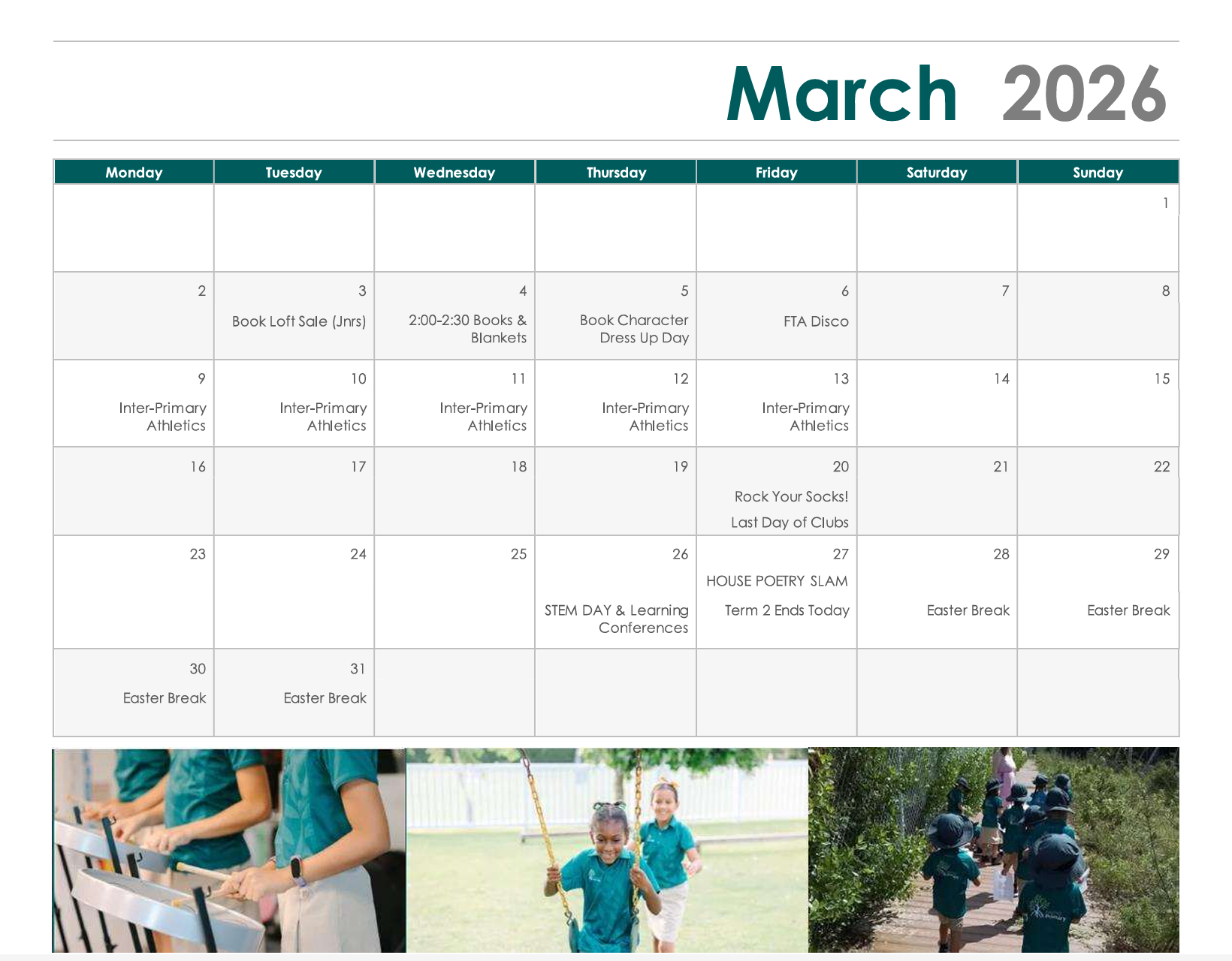 Please see our events calendar for Term 2 here